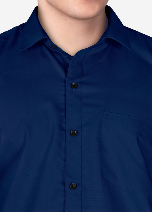 Navy Blue Formal Shirt Men Regular Fit Solid Spread Collar (Full Sleeve, Navy Blue)