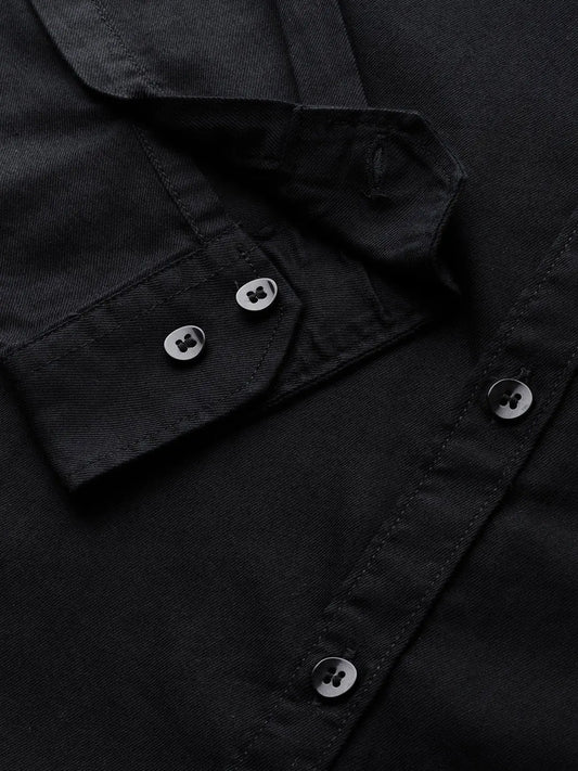 Men Black Regular Fit Solid Full Sleeves Formal Shirts