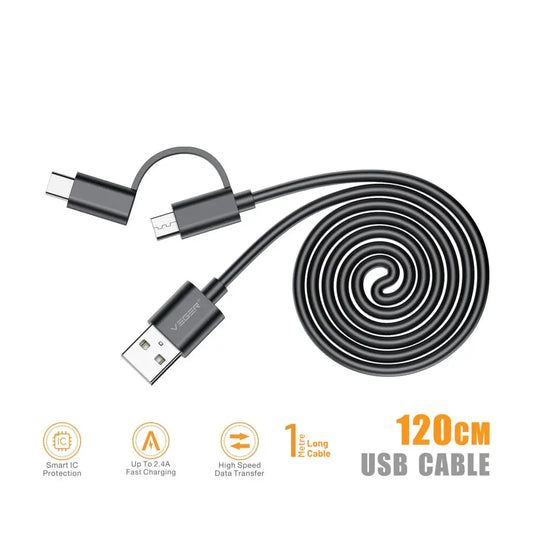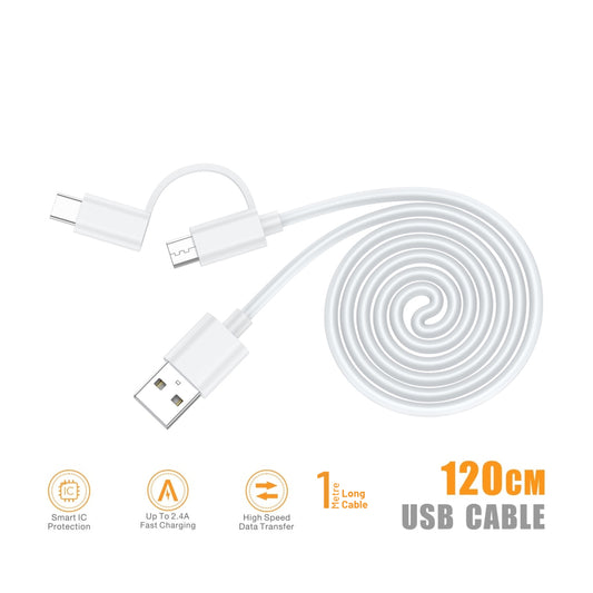 Zabolo 2 in 1 Fast Charging & Sync Portable USB Data Cable 2.4 A, 1.2 Meter (USB Type C & Micro USB Cable)