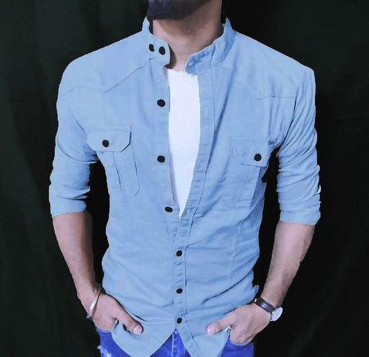 Men Regular Fit Solid Casual Shirt (Sky Blue)
