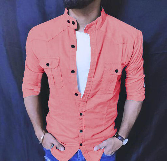 Men Regular Fit Solid Casual Shirt (Light Pink)